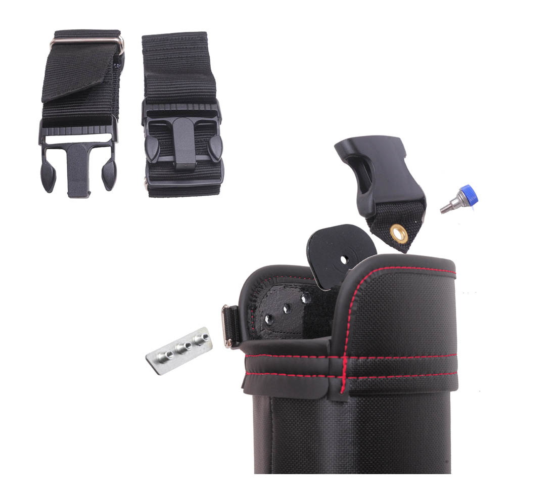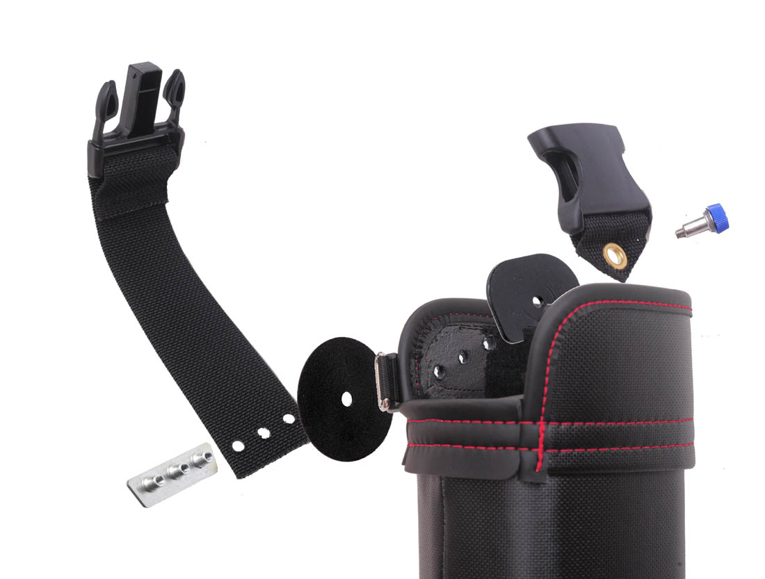 2本のネジを使用してバックルを斜めに固定します。斜めにすることで太ももに触れることを軽減し、歩行時にバケットが暴れにくくなります。