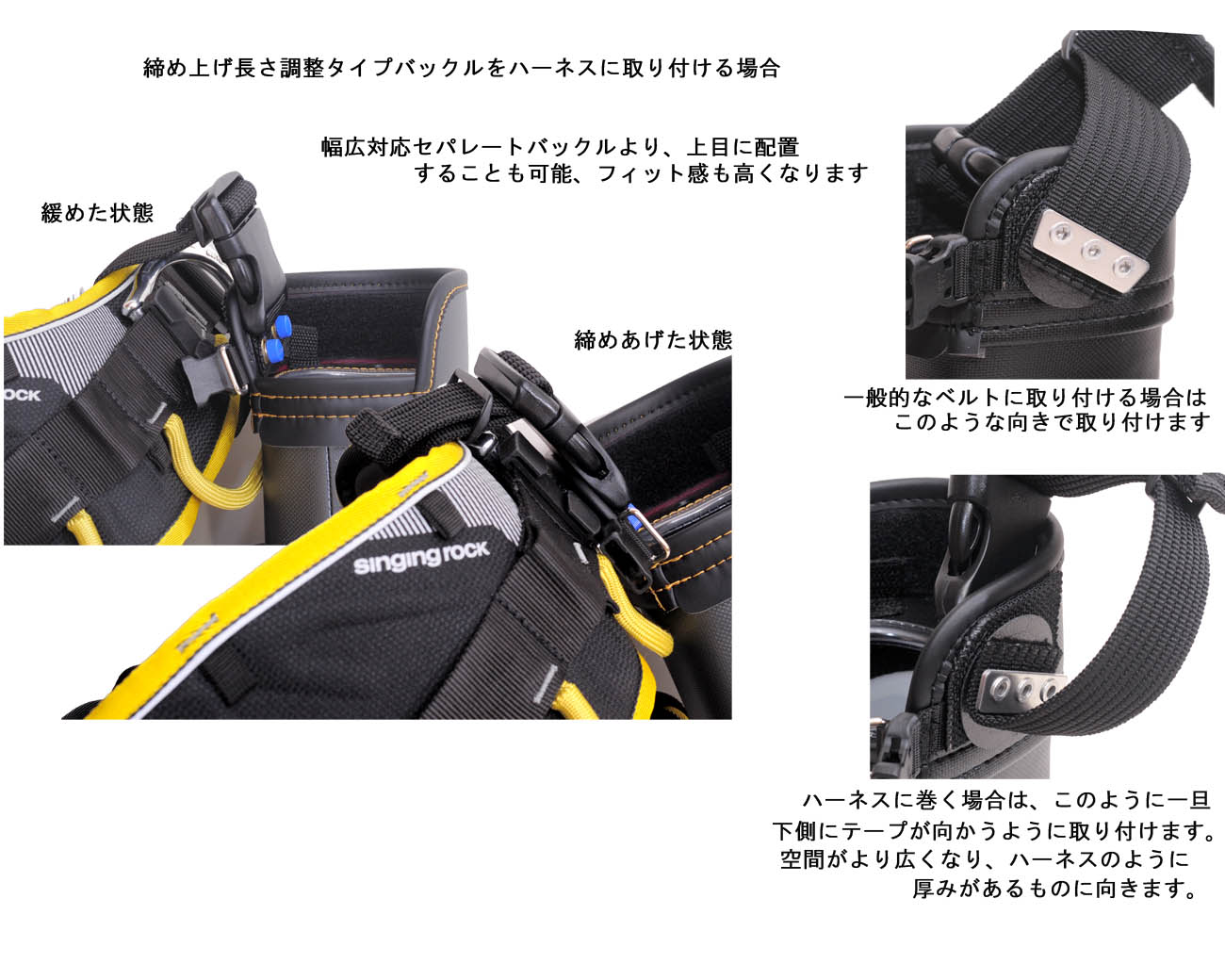 ・締め上げ長さ調整タイプ(固定) 細幅からハーネス幅広にも対応