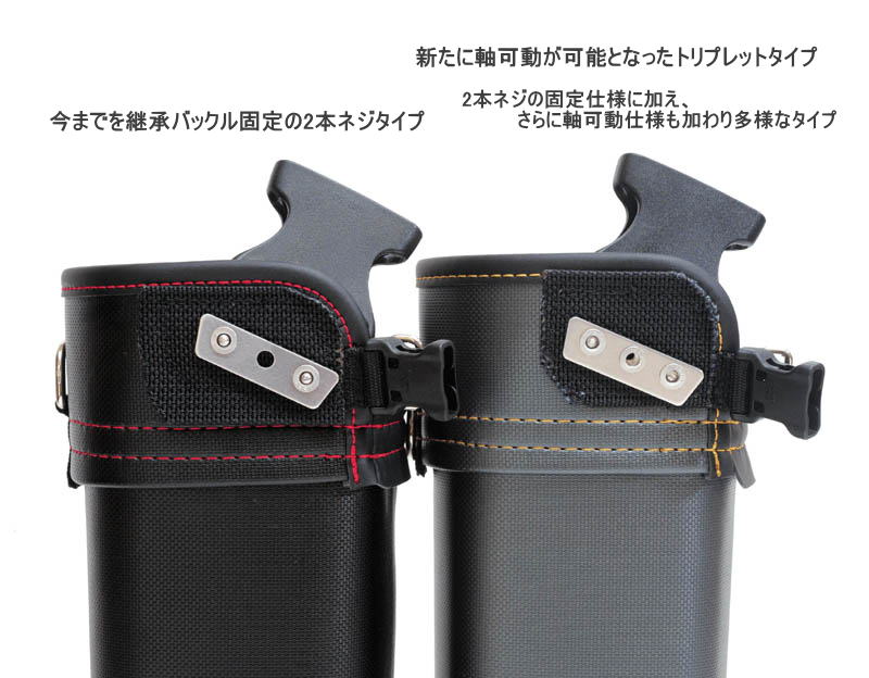 ・バックルをネジ式取り付けとすることで、バックルのタイプ変更、パーツ交換、多彩なバックルタイプをラインナップすることが可能となりました。