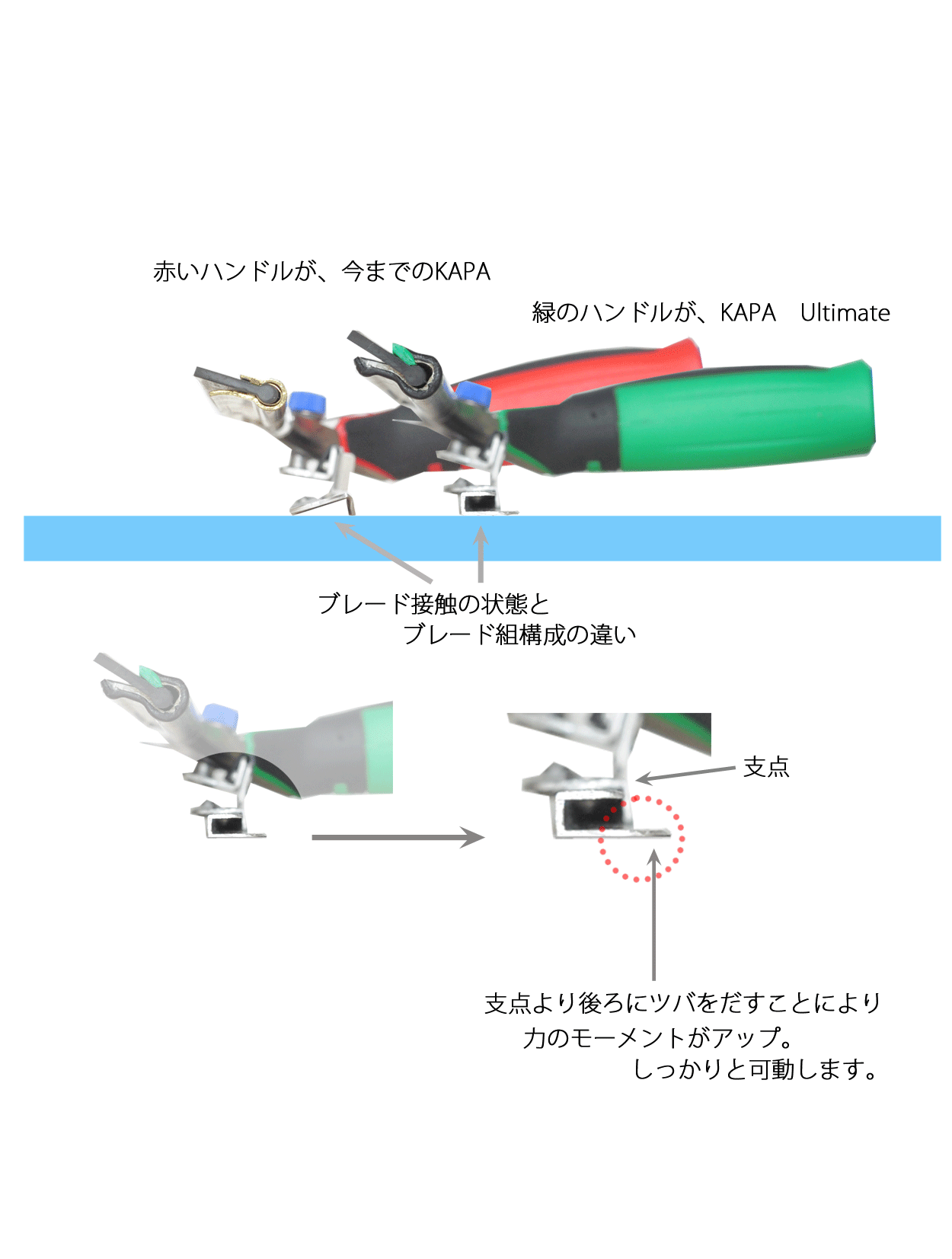 - バージョンアップ版のKAPAブレードは、「ブレードの強度」「モーメント」「接触面積」 これらの向上によりKAPAブレードの特徴をより明確に発揮します。