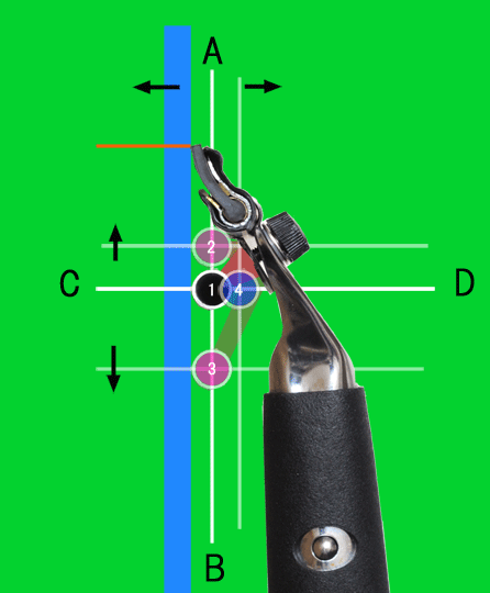 次に図3にある垂直線ABと水平線CD交差する点をブレードの位置と見立て、ブレードの位置が、ABCDそれぞれのどの方向に近づくかで特性が違ってくるかを見ていきます。