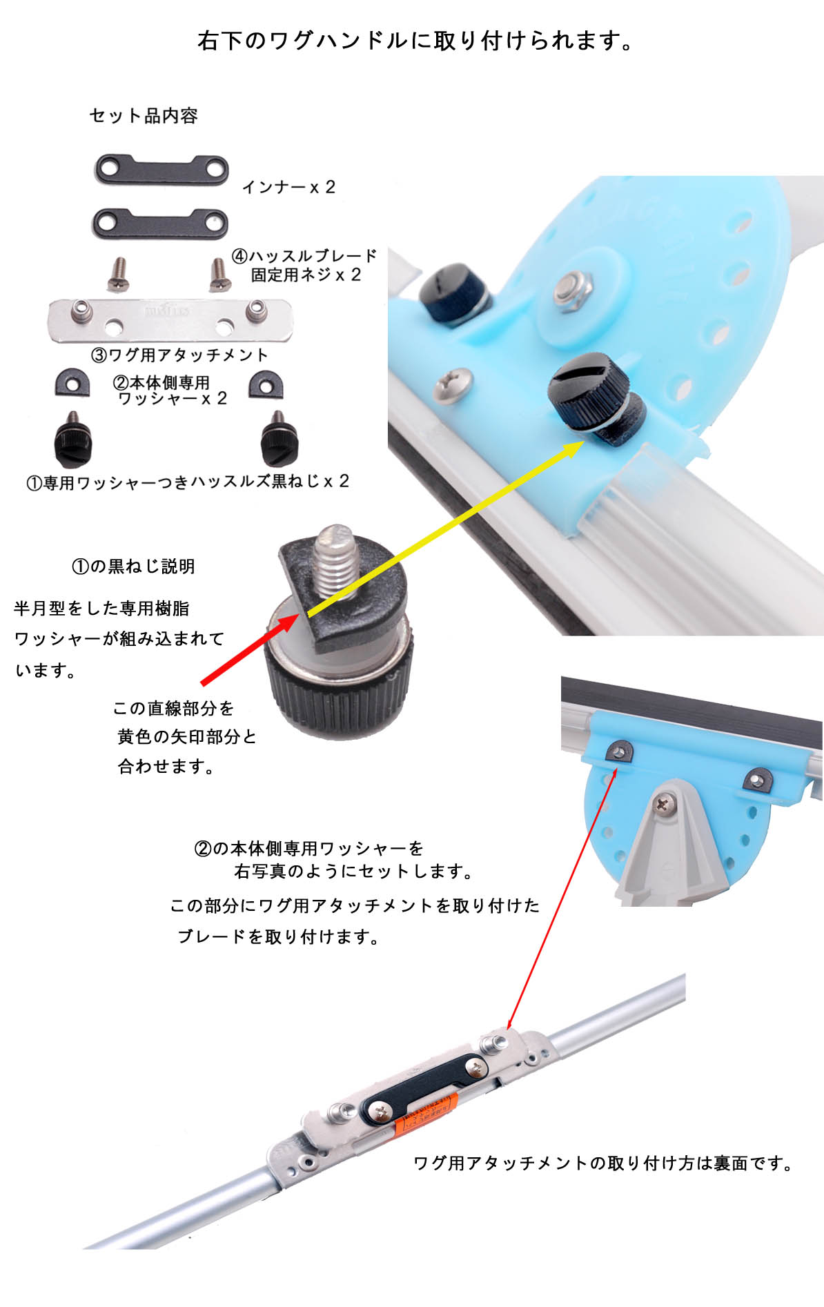 新たな操作性を見出すアタッチメント「Hustles On Wag」 ハッスルズをワグハンドルに取り付けられるようになりました。ワンストロークポジション(おなか側)のみ使用可能。