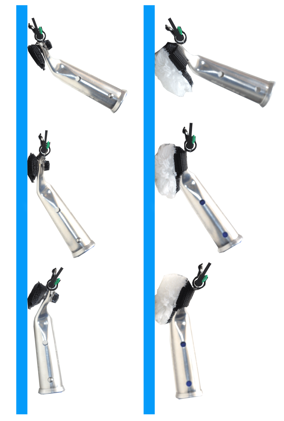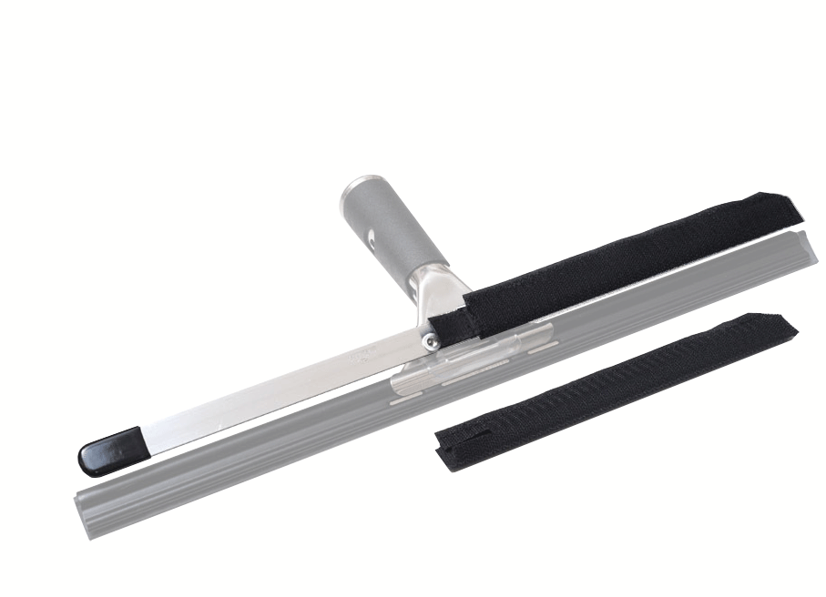 ハッスルズの基本となる平板アルミブレードに、専用のアンダーレイヤーを使用することで、ウォッシャーの脱着が容易となります。面ファスナー(マジックテープ)により、微妙な貼り位置調整も可能。また、汚れの程度に合わせてウォッシャーカバーの変更もしやすくなります。